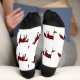 Winter holiday socks featuring a buffalo plaid patterned red fox.