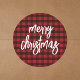 Buffalo Plaid Script Calligraphy Merry Christmas Classic Round Sticker
