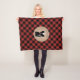 A fleece blanket featuring an illustration of a skunk. Background is black and red buffalo plaid. Personalize the name.