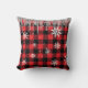 This pillow is in a buffalo plaid with snowflakes across it on both sides.