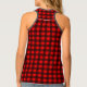 This women's tank top features a red and black check buffalo print pattern. Piping is available in black or white.