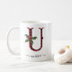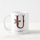 Black and Red Buffalo Plaid U Monogram Xmas Coffee Mug featuring a cute A initial letter with a buffalo plaid pattern and mistletoe watercolor element. The custom name template under the U monogram is in a swirly handwritten calligraphy font with flourishes. Give a thoughtful personalized Christmas mug as a winter holiday gift or stocking stuffer. For a different monogram letter check out the "Other products from this collection" section below.