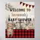 Buffalo Plaid Woodland Animals Welcome Poster