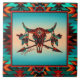 Brighten Your Home with this Unique "One of a Kind" Buffalo Skull And Arrows Ceramic Tile! It Features a Native American Buffalo Skull And Arrows with Feathers on a Turquoise and Orange Background...Surrounded by a Southwest Border in Turquoise, Orange & Black!
