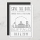 A unique wedding save the date invitation for a marriage taking place in the beautiful city of Buffalo, New York. This invitation features a stylized illustration of the city's unique skyline with its name underneath. This is followed by your wedding day information in a matching open lined style. On the reverse side of the invitation is a deep gray color to complement the look and feel. All individual elements of the invite card are unlocked so feel free to change any details necessary such as font sizes, styles and more by using the customization function. You can add a photo to the reverse side and add a black and white filter to it. Have fun being creative and making it your own!