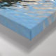 A photograph of a male bufflehead duck in breeding plumage swimming in blue water is featured on this Premium Wrapped Canvas (Gloss).