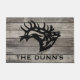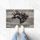 Personalize this Unique "One of a Kind" Bull Elk Door Mat! It Features a Majestic Bugling Bull Elk Black Silhouette...on a Stressed Wood Background!