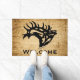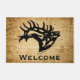 Personalize this Unique "One of a Kind" Bull Elk Door Mat! It Features a Majestic Bugling Bull Elk Black Silhouette...on a Stressed Wood Background!