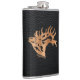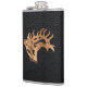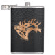 This Unique "One of a Kind" Bull Elk Flask! It Features a Bugling Bull Elk Wood Silhouette on a Black Leather Background!