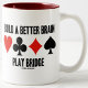 If you're an avid bridge player, you'll enjoy wry bridge / duplicate bridge humor with this mug featuring the four card suits along with the saying "Build A Better Brain Play Bridge". Make others do a double-take at what the game of bridge does to one's brain with a dose of brainy humor today!