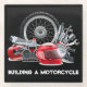Building a Motorcycle with Parts Drawing Glass Coaster