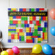 Fun birthday backdrop for a boys primare colo birthday party theme! Cool Primary colors, red green blue yellow white and gray, linked interlocking generic brick building blocks pattern looks like fun children's play toys. Great for a Boy's birthday party theme as favors and decorations.