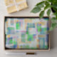 A non-repeating design in overlapping watercolor strokes. Colors include blue, greens, and pinks.
