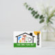 Cover features a colorful handyman tools building landscape frame design. The yellow sun shines bright on your business name "HANDYMAN" which you can change. Near the green lawn layer is your phone contact.