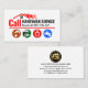 An all white cover features a red roof and border line design. Just underneath the roof is the caption "CALL" which you can change alongside the business name "HANDYMAN SERVICE" and the contact details. Near the base is an array of handyman tools which can represent some of the services that you offer. e.g. the brown drill-measuring tape can represent home repairs, the green brushes for painting-remodeling etc.