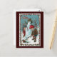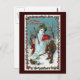 Lovely vintage Christmas image of two children building a snowman. The bigger child is shoveling the snow and the smaller is hiding behind the snowman getting ready to throw a snowball. The message is "A Merry Christmas".