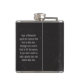 Well made flask, a little better than I had expected. Flask came in clear plastic box which gave it a nice presentation when I took it out of the zazzle packaging. Image is not printed on flask but on sticker. Don't know how this will hold up I haven't used it yet. This would make a Great gift! I plan to purchase more for friends! Cheers. I thought a little brighter than computer. Very crisp, writing wasn't