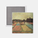 Bulb Fields by Vincent van Gogh is a vintage fine art post impressionism floral landscape nature painting. A farm field of blooming spring flowers with a farmer walking, the sky is filled with gray storm clouds. A farmhouse is in the distance.