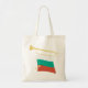 On this tote bag, you'll find a striking graphic of the Bulgarian flag gracefully hanging from a majestic bugle. The colors of the flag, white, green, and red, are beautifully represented and will instantly catch the eye of those around you. The bugle, a symbol of Bulgarian heritage and traditions, adds an authentic touch to the design.