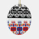 Lightweight, smooth, pure white ornament with nice sheen. Perfect size to be seen from across the room ... and to attract closer inspection! Price was great for ordering enough for the whole family! Clear, bold black design just as requested. Matches the order exactly. Just so nice!