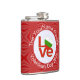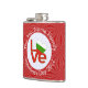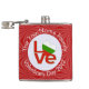 Hip flask showing the Bulgarian LOVE FLAG. The word LOVE is featured in red letters inside a white, fractal circle of squiggly squares. The circle sits on a red, fractal background of squiggly squares. Perfect Valentine's Day gift for him, but can be customized for any occasion. Enjoy the flag of Bulgaria.
