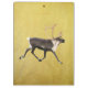 A bull caribou, or reindeer, superimposed on a brain-tanned leather background. The caribou (Rangifer tarandus), known as the reindeer outside of North America, is a deer of the Arctic and Subarctic. While overall widespread and numerous, some subspecies are rare and one has gone extinct. The Inuit word tuktu means - deer that never stops moving. Caribou are always on the move, going north to calve, heading for the winter grounds, and south in the summer. Caribou considerably in colour and size. Uniquely among deer, both genders grow antlers, though these are larger in the males and there are a few populations where females lack them completely. Caribou hunting and herding of semi-domesticated reindeer (for meat, hides, antlers, milk and transportation) are important to several Arctic and Subarctic people. Even far outside its range, the caribou/reindeer is well known due to the myth, probably originating in early 19th century America, in which Santa Claus's sleigh is pulled by flying reindeer, a popular secular element of Christmas. In actual Lapland, reindeer would pull a pulk. Distribution and habitat The caribou/reindeer is a widespread and numerous species in the northern Holarctic, being present in both tundra and taiga (boreal forest). It was originally was found in Scandinavia, eastern Europe, Russia, Mongolia, and northern China north of the 50th latitude. In North America, it was found in Canada, Alaska (USA), and the northern conterminous USA from Washington to Maine. In the 19th century, it was apparently still present in southern Idaho. It also occurred naturally on Sakhalin, Greenland, and probably even in historical times in Ireland. During the late Pleistocene era, reindeer were found as far south as Nevada and Tennessee in North America and Spain in Europe.Today, then species has disappeared from many areas within this large historical range, especially from the southern parts, where it vanished almost everywhere. Large populations are still found in Norway, the Markku region of Finland, Sweden, Siberia, Greenland, Alaska, and Canada. Domesticated reindeer are mostly found in northern Fennoscandia and Russia, with a herd of approximately 150-170 reindeer living around the Cairngorms region in Scotland. The last remaining wild tundra reindeer in Europe are found in portions of southern Norway. A few reindeer from Norway were introduced to the South Atlantic island of South Georgia in the beginning of the 20th century. Today, there are two distinct herds still thriving there, permanently separated by glaciers. Their total numbers are no more than a few thousand. The flag and the coat of arms of the territory contain an image of a reindeer. Around 4000 reindeer have been introduced into the French sub-Antarctic archipelago of Kerguelen Islands. East Iceland has a small herd of about 2500–3000 animals. Caribou and reindeer numbers have fluctuated historically, but many herds are in decline across their range. This global decline is linked to climate change for northern, migratory caribou and reindeer herds and industrial disturbance of caribou habitat for sedentary, non-migratory herds. Fur Fur color varies considerably, both individually, and depending on season and subspecies. Northern populations, which usually are relatively small, are whiter, while southern populations, which typically are relatively large, are darker. This can be seen well in North America, where the northermost subspecies, the Peary Caribou, is the whitest and smallest subspecies of the continent, while the southermost subspecies, the Woodland Caribou, is the darkest and largest. The coat has two layers of fur, a dense woolly undercoat and longer-haired overcoat consisting of hollow, air-filled hairs. Antlers Reindeer antlers grow again each year under a layer of fur called velvet. In most populations both sexes grow antlers, which (in the Scandinavian variety) for old males fall off in December, for young males in the early spring, and for females in the summer. The antlers typically have two separate groups of points, a lower and upper. Domesticated reindeer are shorter-legged and heavier than their wild counterparts. There is considerable subspecific variation in the size of the antlers (e.g., rather small and spindly in the northernmost subspecies), but in some subspecies the bull reindeer's antlers are the second largest of any extant deer, after the moose, and can range up to 39 inches (100 cm) in width and 53 inches (135 cm) in beam length. They have the largest antlers relative to body size among deer.Antler size plays a significant role in establishing group hierarchy. Nose and hooves Reindeer have specialized noses featuring nasal turbinate bones that dramatically increase the surface area within the nostrils. Incoming cold air is warmed by the animal's body heat before entering the lungs, and water is condensed from the expired air and captured before the deer's breath is exhaled, used to moisten dry incoming air and possibly absorbed into the blood through the mucous membranes. Reindeer hooves adapt to the season: in the summer, when the tundra is soft and wet, the footpads become sponge-like and provide extra traction. In the winter, the pads shrink and tighten, exposing the rim of the hoof, which cuts into the ice and crusted snow to keep it from slipping. This also enables them to dig down (an activity known as "cratering") through the snow to their favorite food, a lichen known as reindeer moss. The knees of many species of reindeer are adapted to produce a clicking sound as they walk. Diet Reindeer are ruminants, having a four-chambered stomach. They rely primarily on lichens in winter, especially reindeer moss. However, they also eat the leaves of willows and birches, as well as sedges and grasses. There is some evidence to suggest that on occasion, they will also feed on lemmings, arctic char, and bird eggs. Reindeer herded by the Chukchis have been known to devour mushrooms enthu