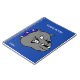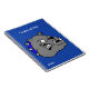 A cartoon head of a gray bull dog decorates the front of this blue spiral notebook, with white custom text ready to personalize. Great for school, home or office.