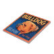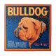 A vintage crate label print illustrating a bulldog with a blue patterned background and an orange border. Choose this art print on your Zazzle product today.