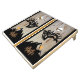 Personalize is a "One of a Kind" Bull Elk Corn hole Set! It Features a Black Bugling Bull Elk Silhouette, Mountains and Sun on a Wood Background!