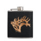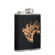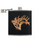 This Unique "One of a Kind" Bull Elk Flask! It Features a Majestic Bull Elk Wood Silhouette on a Black Leather Background!