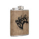 This Unique "One of a Kind" Bull Elk Flask! It Features a Wood Bugling Bull Elk Silhouette on a Brown Leather Background!