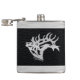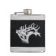 This Unique "One of a Kind" Bull Elk Flask! It Features a Silver Bugling Bull Elk Silhouette on a Black Leather Background...Surrounded