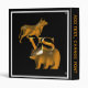 * A golden bull and a golden bear cover this black binder. You can change the black background to a color of your choice. Binders are available in three sizes. Add your own text to personalize.