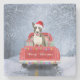 Bull Terrier Dog in Snow sitting in Christmas Stone Coaster