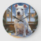 Bull Terrier with Christmas Lights Holiday Large Clock