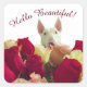Bull terrier with roses greeting - Hello Beautiful Square Sticker