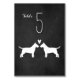 White Bull Terrier bride and groom silhouettes with heart. A chalkboard style wedding reception table card for Bull Terrier lovers. Each card must be numbered and added to cart separately. Visit Jenn's Doodle World for even more dog breed table cards and Bull Terrier themed wedding planning products.