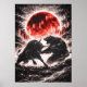 Bull vs Bear Market in Red Moon Forest - Japanese Poster