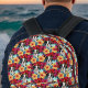 Bulldog and Tropical Red Orange Hibiscus Patterh Printed Backpack