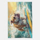 Bulldog Beach Surfing Painting Kitchen Towel