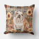Bulldog Dog Fall Watercolor Flowers Throw Pillow