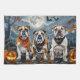 Unleash the spooky spirit with this eerie Halloween design featuring a pack of dogs under a dark, moonlit sky, surrounded by flying bats and glowing pumpkins. Perfect for those who love a touch of frightful fun with their furry friends!