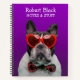 Bulldog in heart glasses and bow tie notebook
