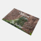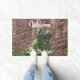 This Welcome doormat features the photographic image of a bulldog statue, commonly found around Savannah, Georgia, against a red brick background that's ideal for Bulldog fans, dog lovers and a classic traditional welcome with a fun twist. Customizable greeting and personalized Family Name.