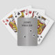 Fun deck of standard playing cards, with graphics of a brushed aluminum look, with three bullet holes. Gray text, at the top, is ready to personalize for your man cave, or as a great gift idea.