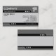 A stylish business card template with opposing bullet train like shapes with porthole like spots. Suitable for many types of business. The logo is from one of Zazzle's picture fonts and can be removed or replaced with your logo. The theme is continued on the back of the card which can be used for additional details or left as is.