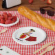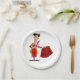 A bullfighter in the ring with the bull. The matador is holding a red cape. This design looks really effective on these Paper Plates