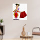 A bullfighter in the ring with the bull. The matador is holding a red cape. This design looks really effective on these Poster