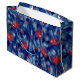 Bullfinches, red birds blue forest trees fiber art large gift bag