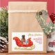 On these pretty Holiday decorative stickers, a Bullmastiff dog sits in a pretty red and gold decorative sleigh. Beside the dog sits gift packages tied with colorful bows. The gold script text at the right says "MERRY CHRISTMAS" and your custom text is in red. Perfect for your Christmas correspondence or gift packages! There are many other breed images and products at Dog Village.
